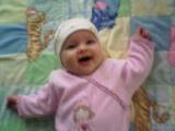 Turn on the heat was the first thing that was on my mind this morning as I sat in bed not wanting to get out of the bed to the icily cold air. I think it is time to turn on the heat when you see ice coming off the windows and you can see the the hot air coming out of your month when you talk. So I picked out something more to where today. No shorts and T-shirt today. When I woke Emily up this morning for her feeding I noticed a warm baby with a hat on her head. I guess Debbie felt it was cold this morning too. I had to take a picture of Emily as she looked