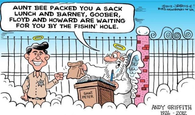 The loved Andy Griffith passed away today. He is left by many fans and family. I was even a fan of his show called “Andy Griffith” I can hear the theme song over and over in my head. Andy was 86 years old. Family and close friends state Andy was a born-again Christian and was active in his church. He will be missed by many.